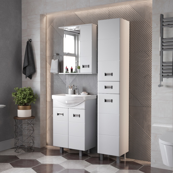 Глянцевый белый цвет фасада, ненавязчивая горизонтальная фрезеровка, врезные хромированные ручки и аккуратная лаконичность - все это позволяет коллекции Балтика стать центральным звеном интерьера ванной комнаты.
