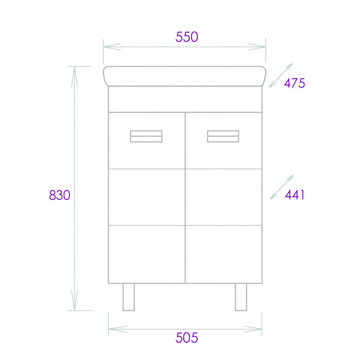 Размеры тумбы без учета раковины и ножек: 50x44x67 см.