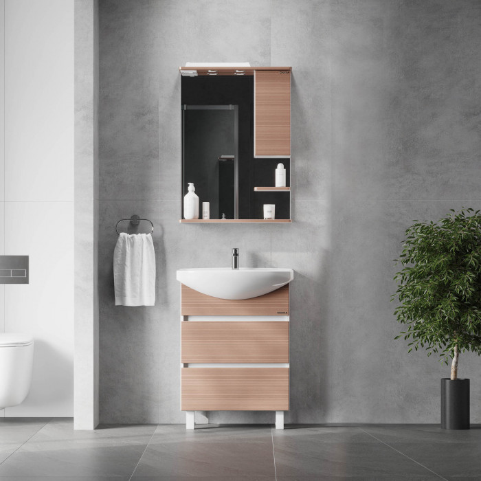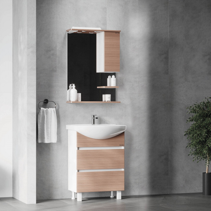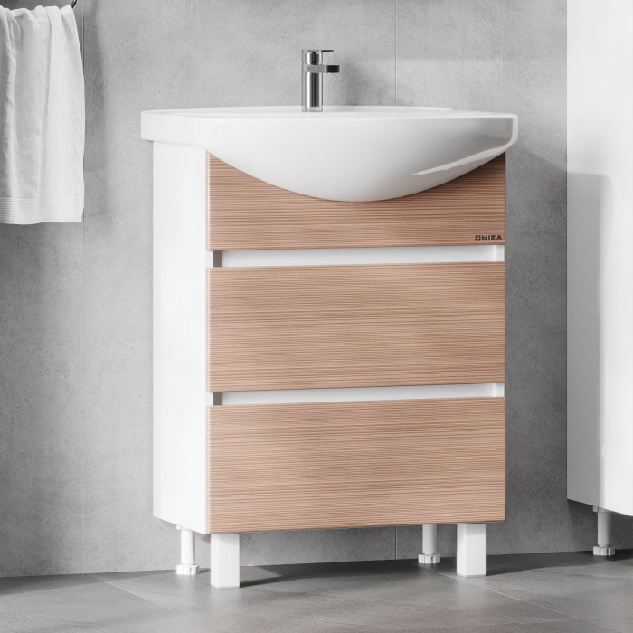 Размеры тумбы без учета раковины и ножек 55x31x68 cм.