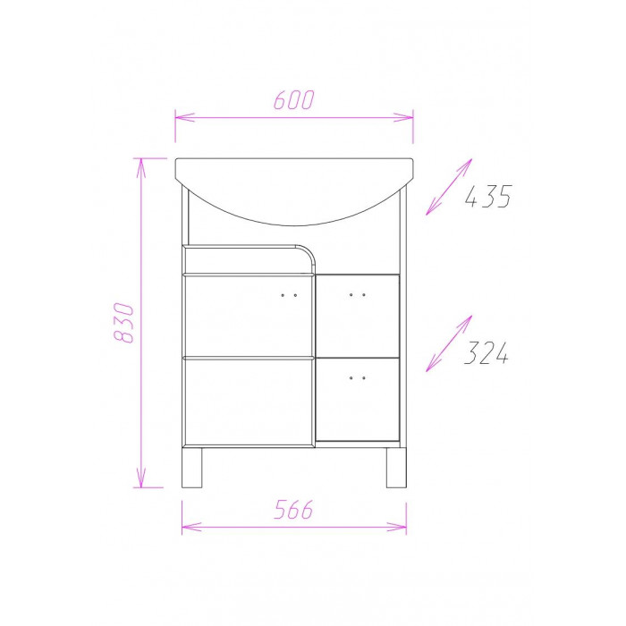 Размеры тумбы без учета раковины и ножек 57x32x68 cм.