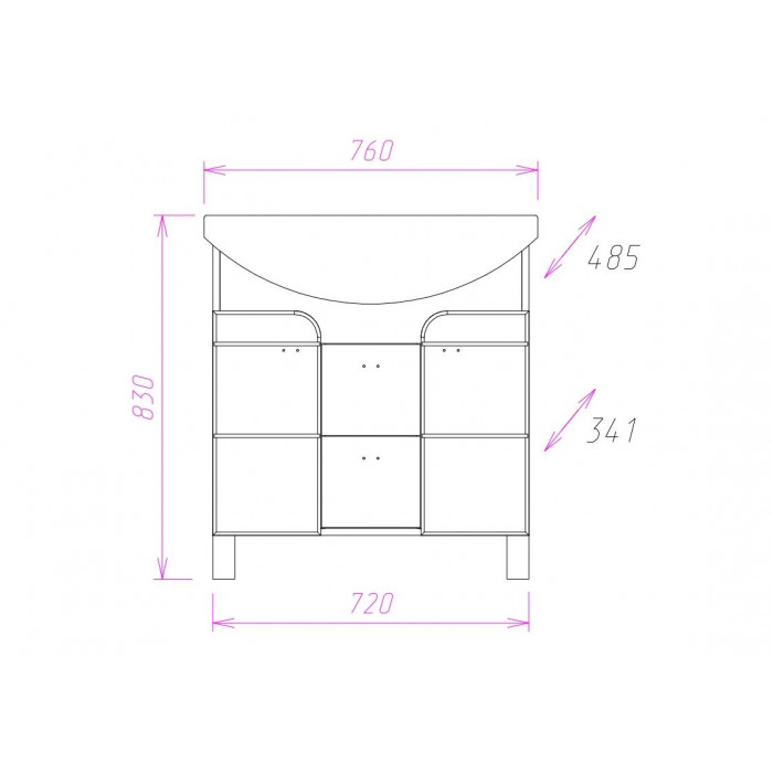 Размеры тумбы без учета раковины и ножек 72x34x68 cм.