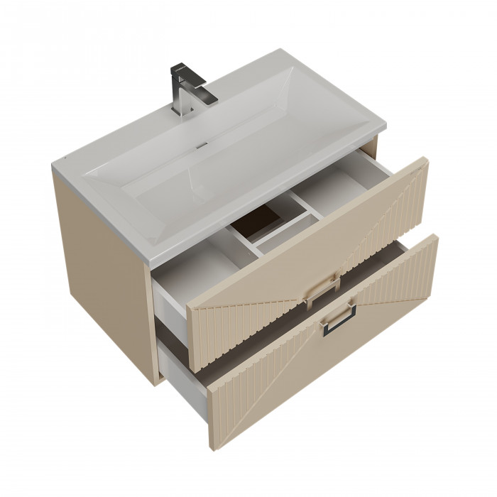 Тумба подвесная Grossman ЛУКСОР-80 см с 2-я ящика, бежевый матовая (ум. Блисс-80 см.)