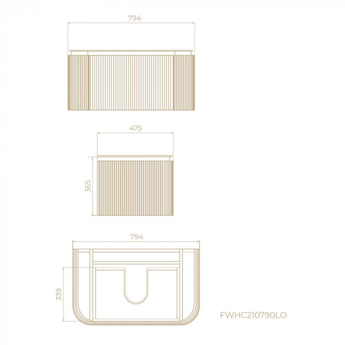 Тумба под раковину подвесная Knotlor ОБЛАКО 79 см светлый ясень рифленая