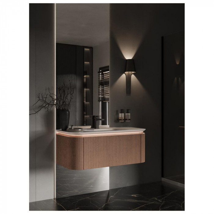 Тумба под раковину подвесная Knotlor ОБЛАКО 99 см красный дуб рифленая Подвесная тумба из фанеры, шпона и МДФ с рифленой поверхностью сочетает натуральную эстетику красного дерева и выразительную фактуру, создавая стильный акцент в интерьере. Встроенная LED-подсветка 4000К с датчиком движения автоматически включается и выключается, а ящики из ЛДСП с направляющими полного выдвижения Soft Close обеспечивают плавное и комфортное использование зоны хранения. Китай 3 года 7930139836405