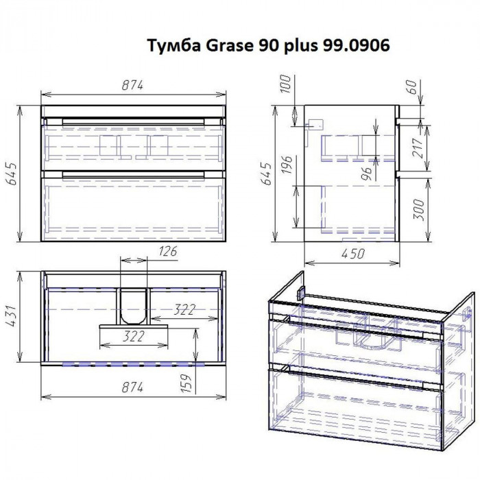 Тумба под раковину подвесная/напольная Dreja Grace Plus 90 см, белый