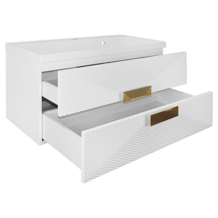 Тумба подвесная 100см Azario ZENA 100/2 с раковиной CLASSIK 100, белый глянец, ручка золото (CS00097709)