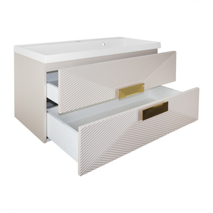 Тумба подвесная 80 см Azario ZENA 80/2 с раковиной CLASSIK 80, кашемир, ручка золото (CS00097029)