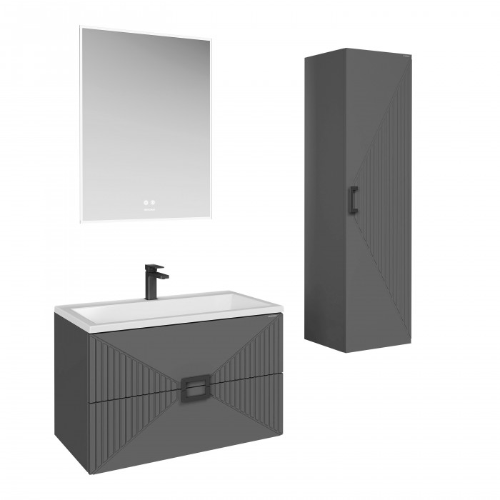 Фасады и корпус выполнены из влагостойкого МДФ, окрашенного прочной матовой краской. Материал устойчив к воздействию влаги, пара и бытовой химии — идеален для ванной комнаты.