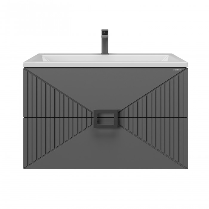 Тумба подвесная Grossman ЛУКСОР-60 см с 2-я ящика, графит матовая (ум. Блисс-60 см.)