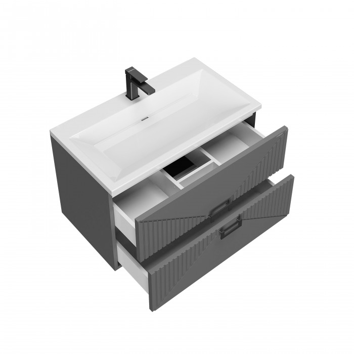 Тумба подвесная Grossman ЛУКСОР-80 см с 2-я ящика, графит матовая (ум. Блисс-80 см.)