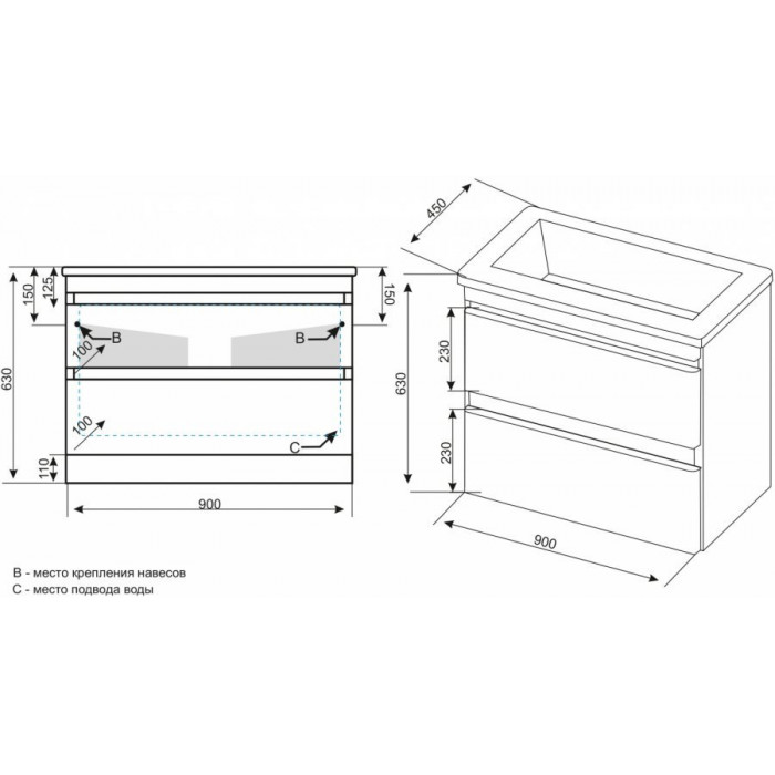 Тумба подвесная Style Line Атлантика 90, Люкс ясень перламутр, PLUS СС-00002219