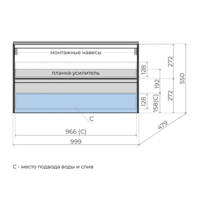 Тумба подвесная Style Line ЛИМА 100 эмаль, под раковину LINE 100, 2 ящ., PLUS, белый матовый ЛС-00002352 1