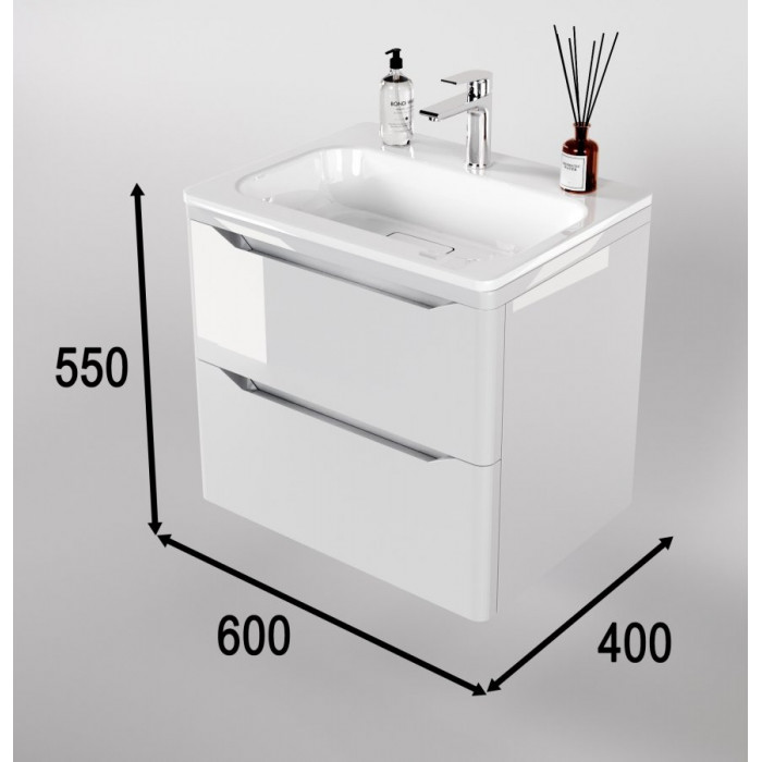 Тумба подвесная Style Line Марелла 60 (2 ящ.) Люкс антискрейтч белый глянец, PLUS СС-00002405