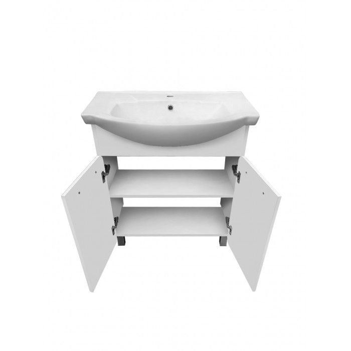 Тумба Runo Эрика 75 под умывальник Элеганс 75 00-00004914 Тумба под раковину ЭРИКА - современный и стильный дизайн в оформлении ванной комнаты. Тумба под раковину ЭРИКА (напольная), выполненная в белом цвете с глянцевым покрытием, инкрустированная квадратной фрезеровкой на фасадах, превосходно украсит любой интерьер ванной комнаты. Тумба в ванную комнату имеет две распашные дверцы и одну встроенную полку. В комплекте к тумбе идут 2 ручки, петли со встроенным доводчиком, 2 хромированные и 2 пластиковые ножки. К тумбе для ванной комнаты подходит керамическая раковина "Элеганс 75" (760*450 мм). Раковина имеет глубину 19,5 см. Мебель для ванной RUNO - красота и практичность в мелочах! современный напольный