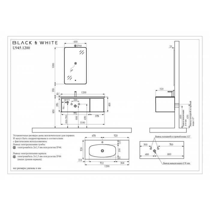 Тумба с раковиной Black&White U945.1200
