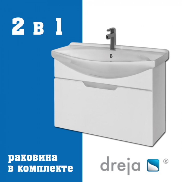 Тумба с раковиной подвесная Dreja Laguna 75 см, белый
