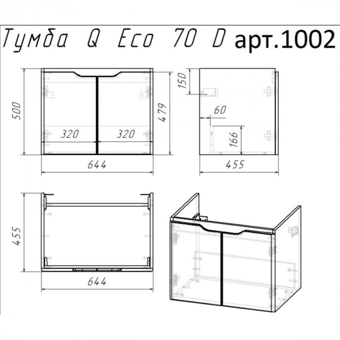 Тумба с раковиной подвесная Dreja Q(D) 70 см, белый
