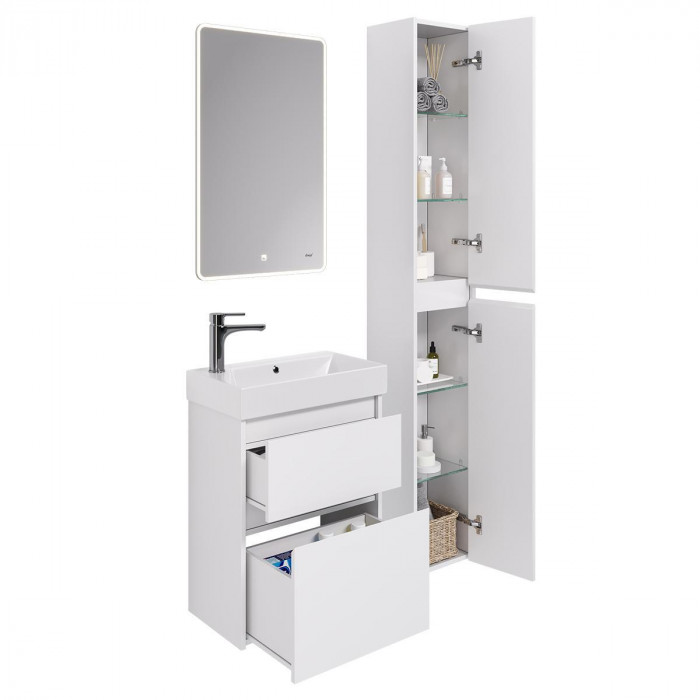 Тумба с раковиной подвесная Dreja Slim 55 см, белый