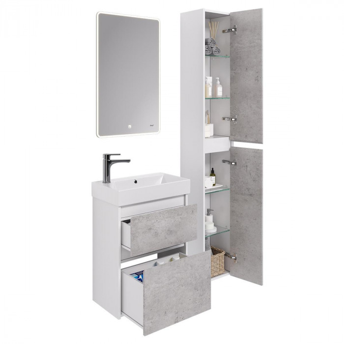 Тумба с раковиной подвесная Dreja Slim 65 см, белый/бетон