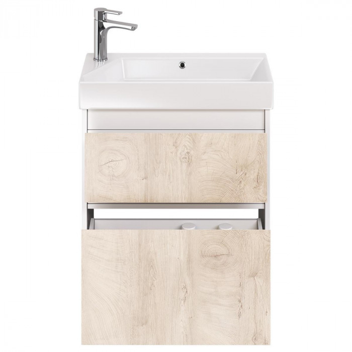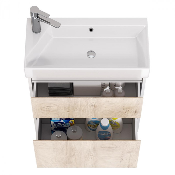 Тумба с раковиной подвесная Dreja Slim 65 см, белый/дуб кантри