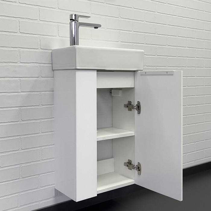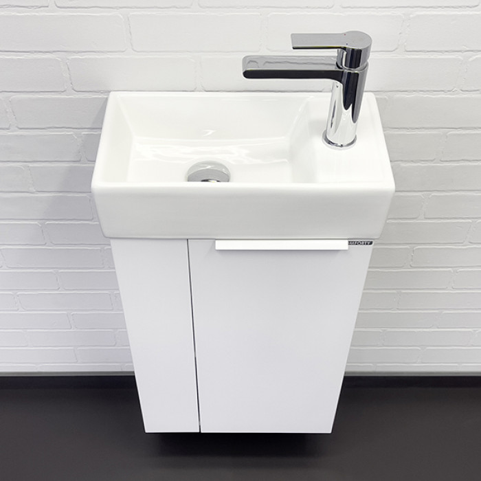 Тумба-умывальник Comforty Асти-40 белый глянец с раковиной Comforty 9140 00-00012835 Санфарфор ВЛДСП глянцевое МДФ глянцевое хром Подвесной Россия Гарантийный срок 2 года Компактная подвесная тумба-умывальник Comforty Асти для небольших санузлов. Фасад и корпус тумбы изготовлены из влагостойкого ДСП. В комплекте асимметричная раковина с отверстием под смеситель сбоку. Раковина покрыта глазурью со всех сторон, поэтому может быть установлена как в правом, так и в левом варианте.