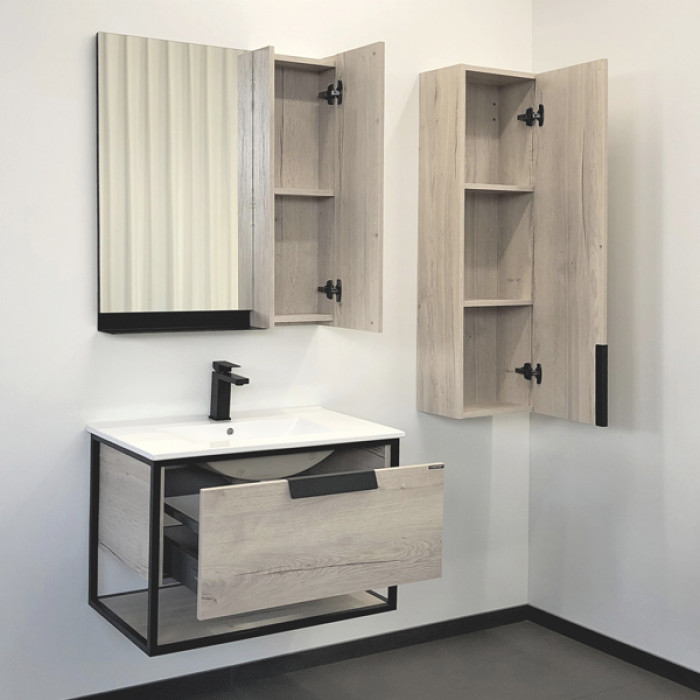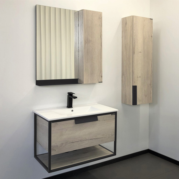 В основе тумбы - каркас из стального профиля окрашенный эмалью цвета графит. Керамическая раковина Comforty 75E из санфарфора.