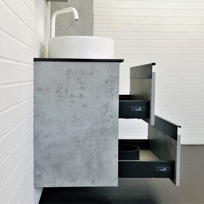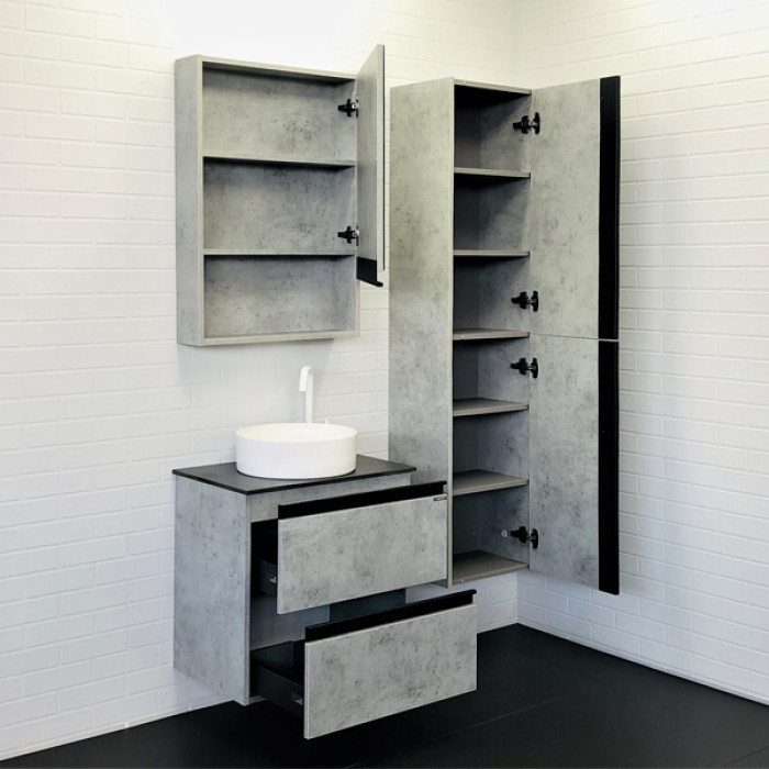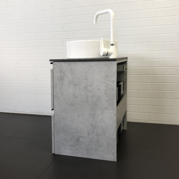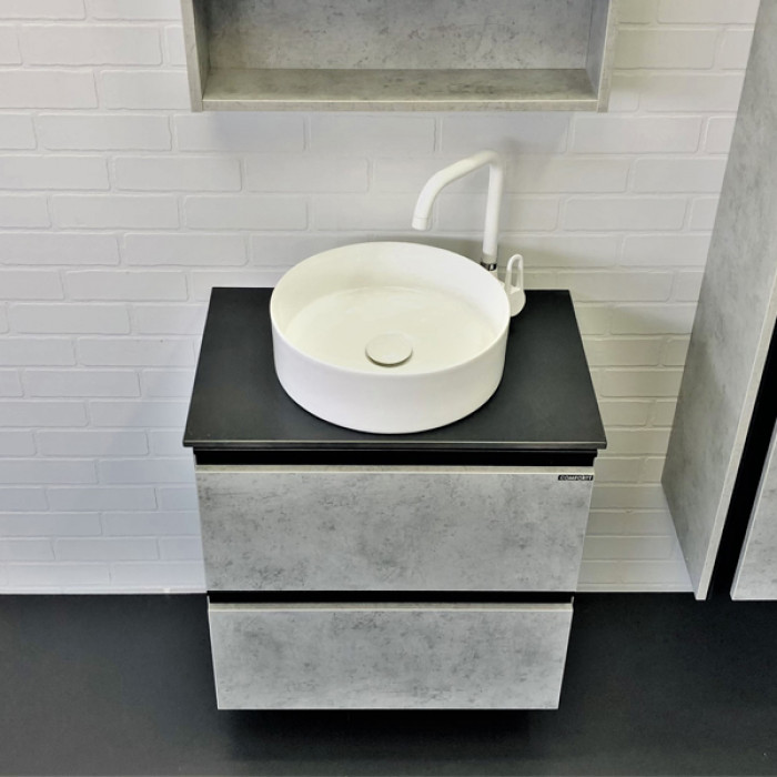 Тумба-умывальник Комфорти Эдинбург-60-2 бетон светлый с черной столешницей и раковиной 9111 00-00005701