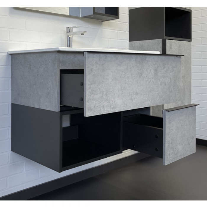 Тумба-умывальник Comforty Франкфурт-75 бетон светлый с раковиной Comforty 75E 00-00011080 Санфарфор ВЛДСП матовое ВЛДСП матовое черный металл Подвесной Россия Гарантийный срок 2 года Тумба-умывальник в современном стиле с двумя выкатными ящиками и пространством для открытого хранения. Ящики оснащены системой плавного закрывания. Тумба укомплектована черными матовыми алюминиевыми ручками и накладной прямоугольной раковиной из санфарфора.