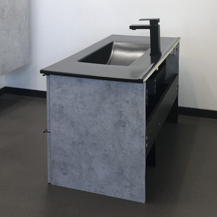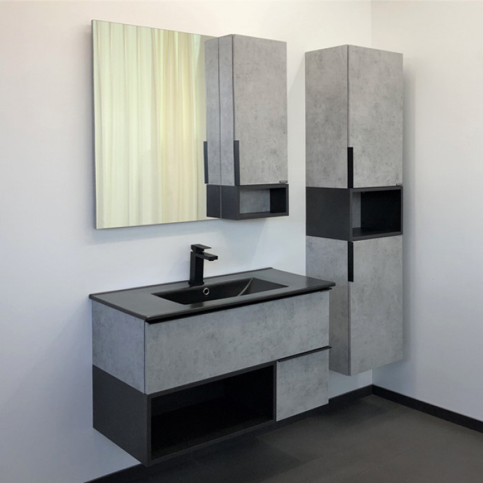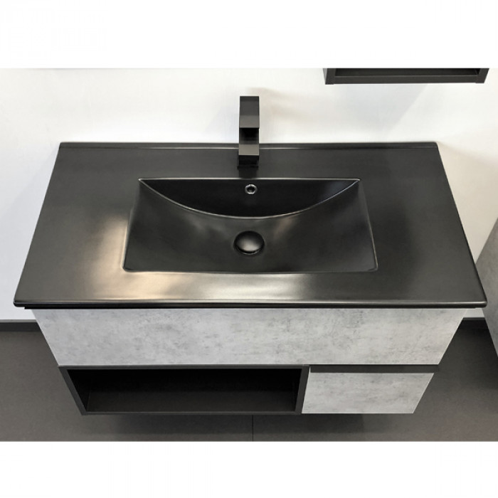 Тумба-умывальник Comforty Франкфурт 90 бетон светлый с раковиной Comforty 90E черная матовая 00-00006503