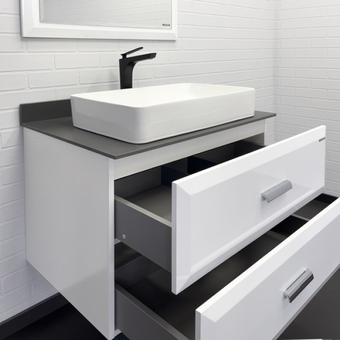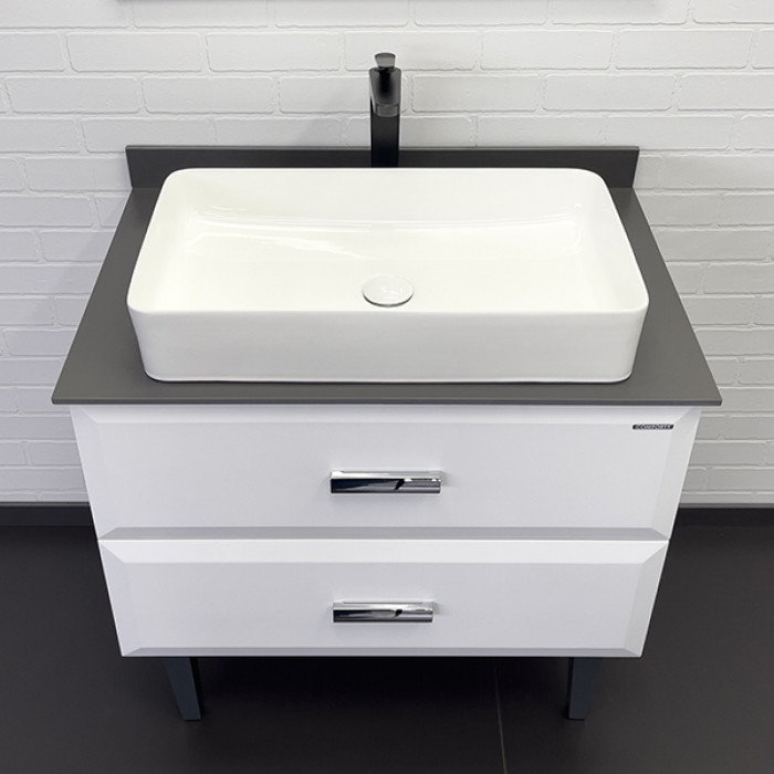 Тумба-умывальник Comforty Империя-80 (00-00014817CF) белый глянец с графитовой столешницей №5, с раковиной COMFORTY 78189