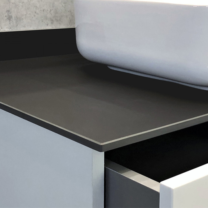 Тумба-умывальник Comforty Милан-90 белая с графитовой столешницей с раковиной Comforty T-Y9378 00-00014426 Санфарфор ВЛДСП матовое МДФ глянцевое хром Подвесной Россия Гарантийный срок 2 года Подвесная тумба-умывальник в современном стиле с выкатным ящиком оснащенным системой с плавного закрывания. За основным фасадом скрывается внутренний ящик оснащенный системой push-to-open (открытие при нажатии). Тумба укомплектована столешницей и бортиком из керамогранита цвета графит и накладной прямоугольной раковиной. Фасады покрыты белой глянцевой эмалью.
