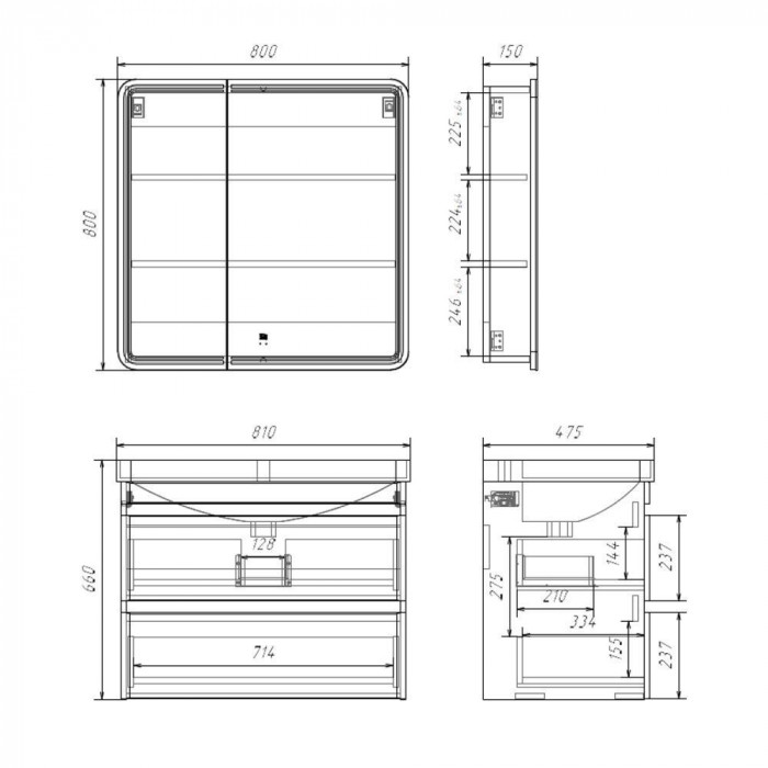 Подвесная тумба шириной 80 см с двумя большими выдвижными ящиками. Направляющие ящиков оборудованы системой плавного закрывания. Лицевая фурнитура на фасадах отсутствует, для открытия ящиков нужно потянуть верхний край фасада, на котором сделан вырез под естественный хват. Боковые края фасада закруглены под радиус 30 мм. Ящики выполнены из ВЛДСП контрастного цвета серый уголь. Тумба подготовлена для подключению коммуникаций снизу и сзади.