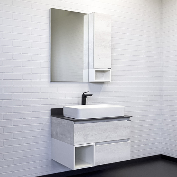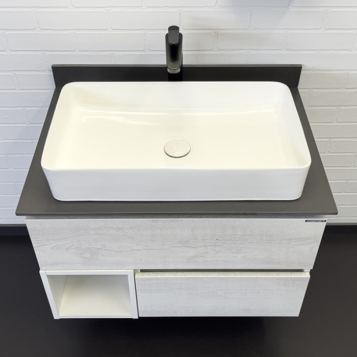 Тумба-умывальник Comforty Прага-75 дуб белый с графитовой столешницей с раковиной 78189 00-00014831