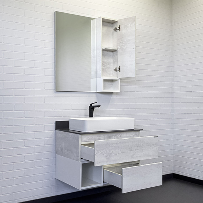 Тумба-умывальник Comforty Прага-75 дуб белый с графитовой столешницей с раковиной 78189 00-00014831 Санфарфор ВЛДСП матовое ВЛДСП матовое Подвесной Россия Гарантийный срок 2 года Тумба-умывальник в современном стиле с двумя выкатными ящиками и пространством для открытого хранения. Ящики оснащены направляющими с системой с плавного закрывания. Тумба укомплектована столешницей и плинтусом из керамогранита цвета графит и накладной прямоугольной раковиной 78189.