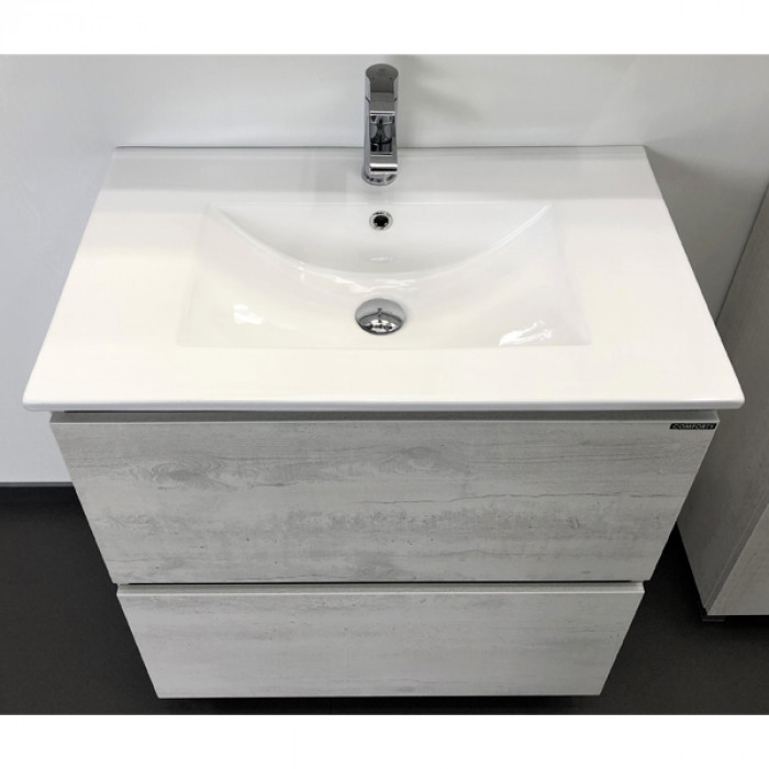 Тумба-умывальник Comforty Верона 75 дуб белый с раковиной Comforty 75Е 00004137102 Санфарфор ВЛДСП матовое ВЛДСП матовое Напольный Россия Гарантийный срок 2 года Современная тумба-умывальник шириной 75 см с двумя объемными выкатными ящиками для хранения принадлежностей для умывания и бытовой химии. Ящики оснащены направляющими с механизмом плавного закрывания. Фасады и корпус из влагостойкого ЛДСП модного цвета дуб белый имитирующего бетон.