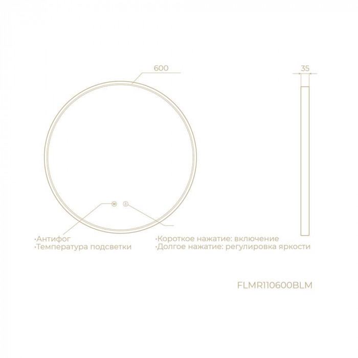 Зеркало Knotlor FLMR110600BLM 60х60 см Круглое зеркало с диммируемой LED подсветкой и антифогом в глубоком синем цвете. Регулировка яркости и температуры в диапазоне от 3000К до 6000К. Сенсорное управление с помощью 2х кнопок на зеркальном полотне. Китай 5 лет 7930139836580