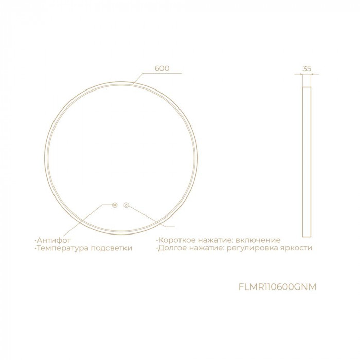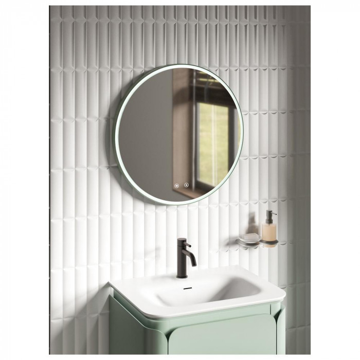 Зеркало Knotlor FLMR110600GNM 60х60 см Круглое зеркало с диммируемой LED подсветкой и антифогом в цвете «матча». Регулировка яркости и температуры в диапазоне от 3000К до 6000К. Сенсорное управление с помощью 2х кнопок на зеркальном полотне. Китай 5 лет 7930139836597
