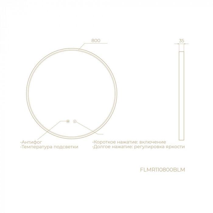 Зеркало Knotlor FLMR110800BLM 80х80 см Круглое зеркало с диммируемой LED подсветкой и антифогом в глубоком синем цвете. Регулировка яркости и температуры в диапазоне от 3000К до 6000К. Сенсорное управление с помощью 2х кнопок на зеркальном полотне. Китай 5 лет 7930139836610