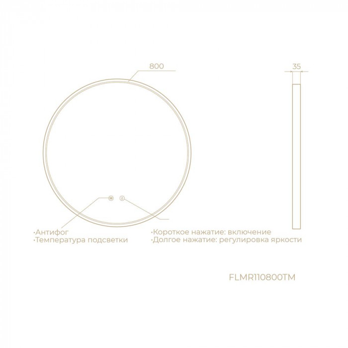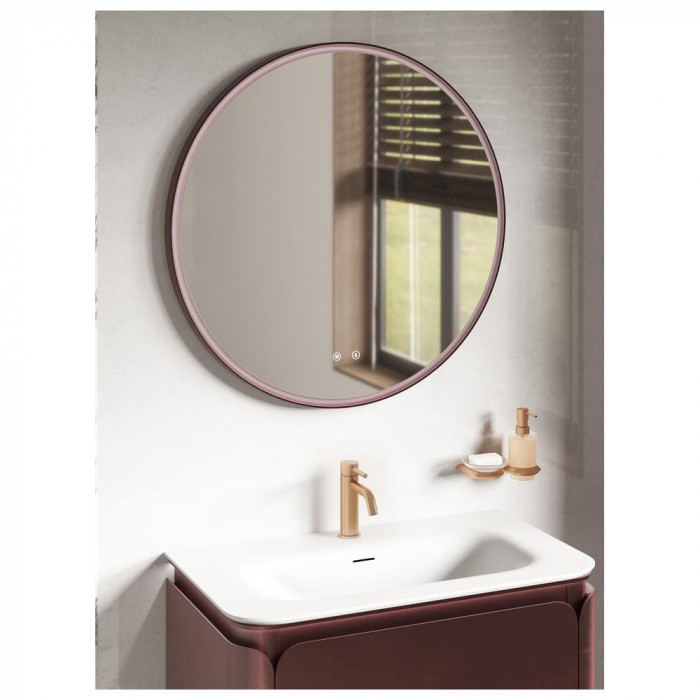 Зеркало Knotlor FLMR110800TM 80х80 см Круглое зеркало с диммируемой LED подсветкой и антифогом в цвете «бордо». Регулировка яркости и температуры в диапазоне от 3000К до 6000К. Сенсорное управление с помощью 2х кнопок на зеркальном полотне. Китай 5 лет 7930139836603