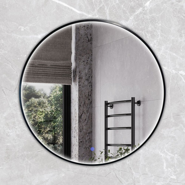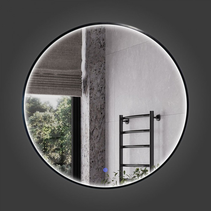 Круглое зеркало в алюминиевой раме Comforty Вега-75 LED IC-подсветка, холодный свет, сенсор, чёрный матовый 00-00020727