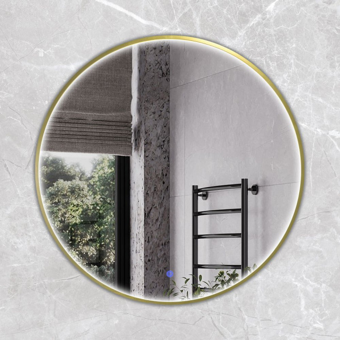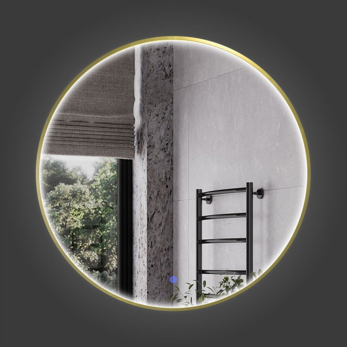 Круглое зеркало в алюминиевой раме Comforty Вега-75 LED IC-подсветка, теплый свет, сенсор, золотой матовый 00-00020725