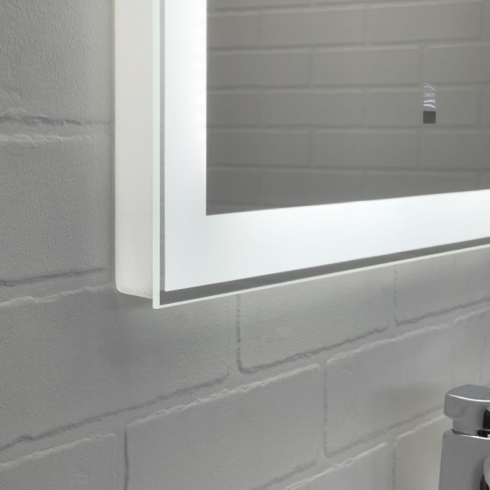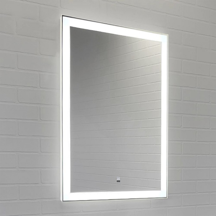 Зеркало оснащено встроенным светодиодным светильником и бесконтактной кнопкой включения подсветки.