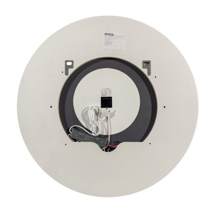 Высококачественное зеркальное полотно с амальгамой на основе серебра. Зеркало оборудовано ореольной и фронтальной Led подсветкой с бесконтактным включателем со встроенной функцией регулировки яркости. Температура подсветки: 6000-6500К холодная. Основа зеркала из МДФ фрезерована кантом по периметру и облицована в матовую пленку цвета "серый шёлк".