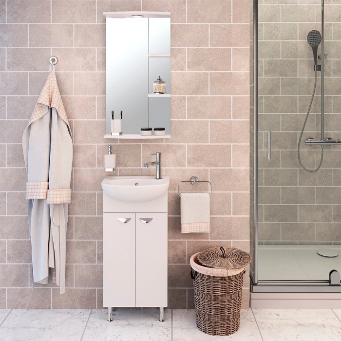 Зеркало для ванной Runo Азов 40 00000000934 Зеркало настенное для ванной Runo Азов - отличное решение для бюджетного оснащения ванной комнаты. Зеркало для ванной оборудовано козырьком, нижней полкой, двумя открытыми полочками (справа) белого цвета, а также одним врезным светодиодным светильником 220 В и розеткой с выключателем. Мебель для ванной RUNO - красота и практичность в мелочах! прямоугольная (в том числе квадратная) современный подсветка
