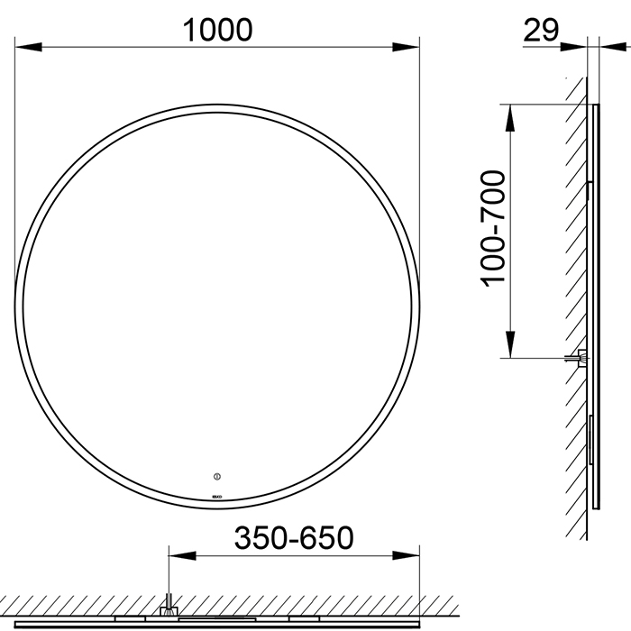 Зеркало Keuco Lichtspiegel 07833001000 Keuco Зеркало с подсветкой круглое D1000мм с регулировкой тона, с обогревом, IP 44, рама по периметру: стакан матовый сенсорный датчик сенсорный светодиодная Германия Цветовая температура, К 2000 -6500 теплый желтый свет; холодный белый свет;