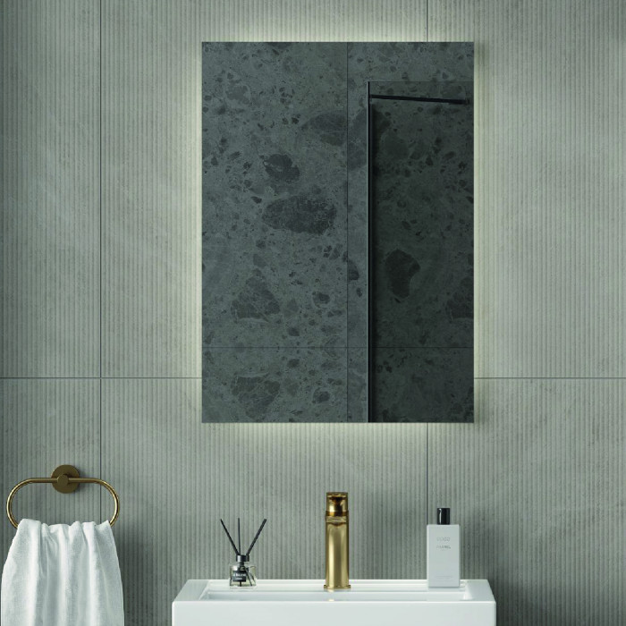 Яркость LED-подсветки регулируется при помощи встроенного диммера и сенсорной кнопки на поверхности зеркала.