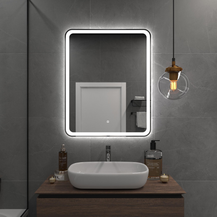 Яркость LED-подсветки регулируется при помощи встроенного диммера и сенсорной кнопки на поверхности зеркала.