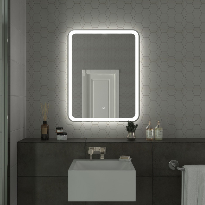 Зеркало Onika Магна 60 с LED подсветкой 206085 Россия прямоугольная лофт ЛДСП белый ламинирование вертикальное светодиодная 9,6 Вт 6000 K сенсорный 60x70 Onika Магна 60 - зеркало для ванной комнаты с LED-подсветкой, регулировкой интенсивности и сенсорным выключателем.