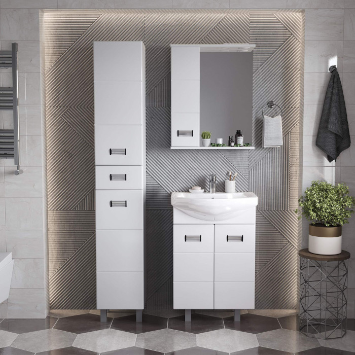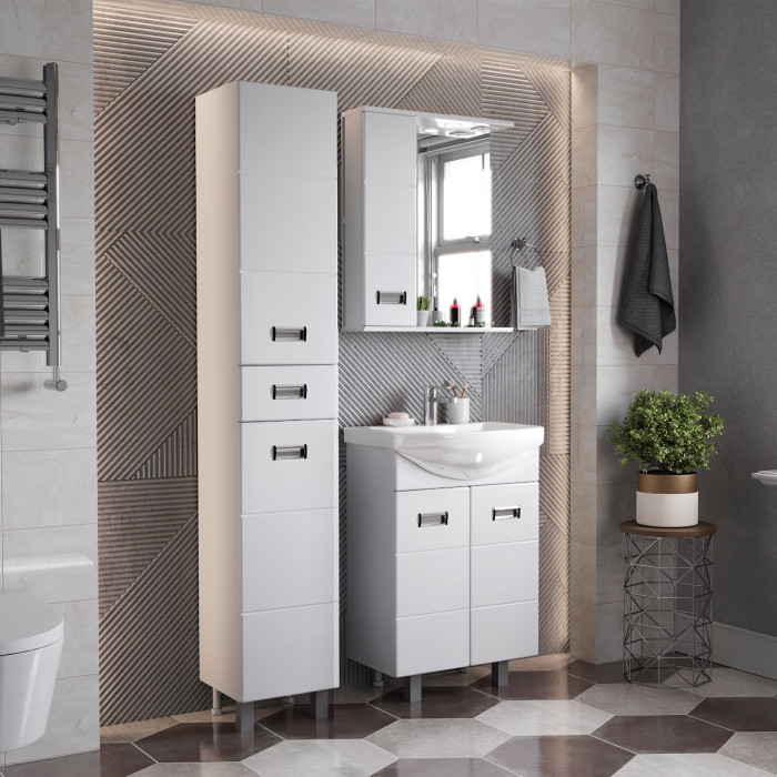 Глянцевый белый цвет, ненавязчивая горизонтальная фрезеровка, стильная врезная хромированная фурнитура и аккуратная лаконичность - все это позволяет коллекции Балтика стать центральным звеном интерьера ванной комнаты.