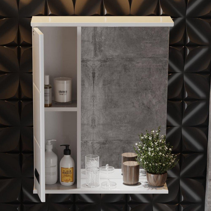 Шкаф-зеркало Onika Балтика Black 58 белый, левый, с подсветкой 205848